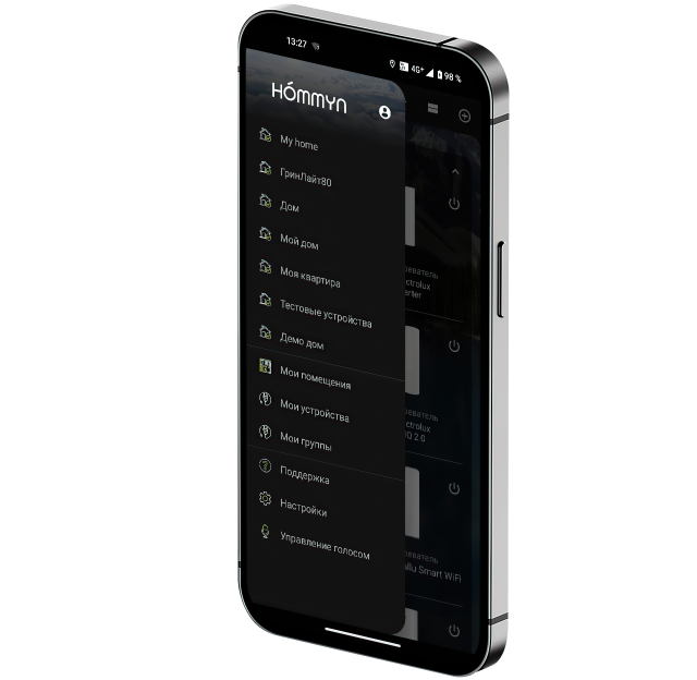 Приложение HOMMYN — это высший уровень удобства и эффективности в управлении микроклиматом умного дома, офиса или предприятия. Приложение предоставляет удаленный доступ к климатическим приборам AURUS, позволяет настраивать и контролировать их работу. Это дает особые преимущества и возможность обеспечить безопасность, а также ощутить свободу и независимость.